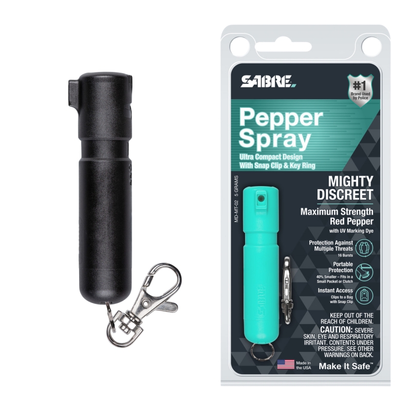 SABRE强力安全迷你型辣椒喷雾是同类产品中的第一个最小的辣椒喷雾,它是如此之小,你会想要随身携带它。事实上,Mighty Discreet 比传统的钥匙圈辣椒喷雾小 40%,因此它不会增加不必要的按键体积,甚至可以放入小手拿包或瑜伽裤中,在旅途中提供安全的保护。但不要让它的大小欺骗你,SABR强力安全迷你型辣椒喷雾仍然有一个较强的冲击力;它包含 16 次辣椒喷雾爆发,可抵御多种威胁,并具有 12 英尺(4 米)的射程,可在安全距离内提供保护。这种辣椒喷雾含有紫外线标记染料,可帮助当局在喷洒嫌疑人后识别嫌疑人。创新的扭顶安全装置有助于防止钱包或口袋意外泄露。滑动钥匙上的钥匙圈,便于携带;随附的按扣固定在钱包、背包、挂绳、拉链头和皮带环上,以便在需要时立即获得保护。